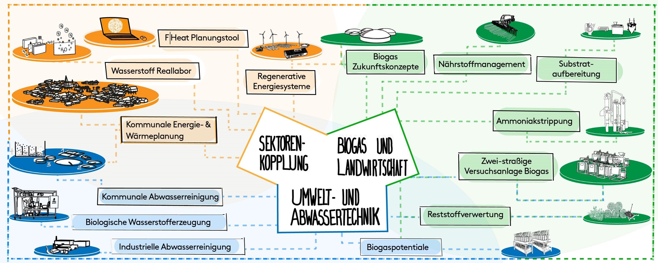 Seit 2019 untersucht die FH Münster am Standort Saerbeck z. B., welche Speichertechniken die zeitliche Lücke zwischen Stromerzeugung und –bedarf schließen können – eine Schlüsselaufgabe der Energiewende. Das im Fachbereich Energie · Gebäude · Umwelt im Saerbecker Bioenergiepark betriebene Labor beschäftigt sich mit folgenden Themenbereichen: