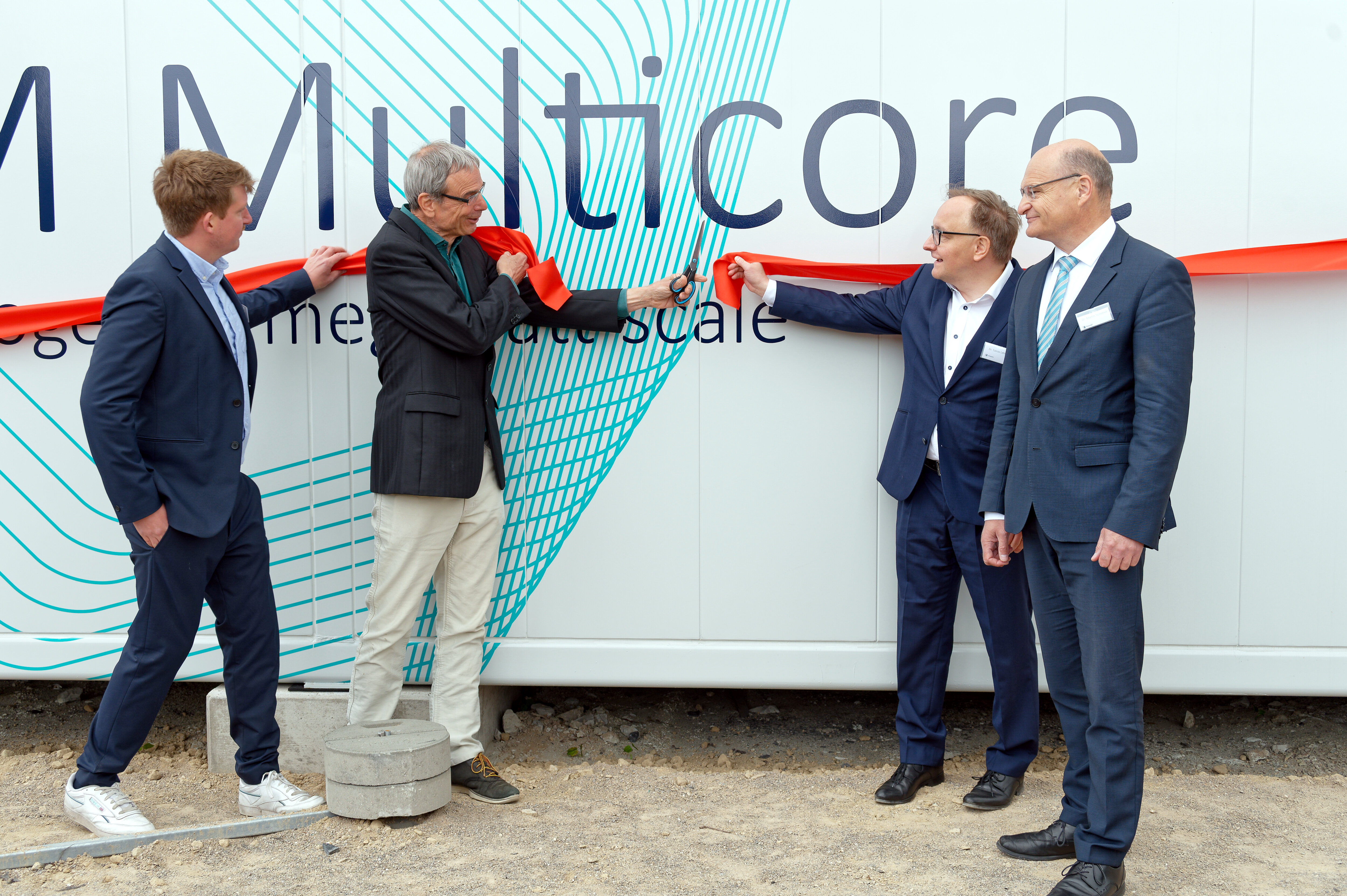 Multicore und Energiewende seien ein „perfect match“, ein perfektes Zusammenpassen, befand Dr. Tobias Lehberg, Bürgermeister von Saerbeck, „das fehlende Puzzleteil zur Dekarbonisierung“. Mit dem direkten Anschluss an die Anlagen im Bioenergiepark erzeuge der Multicore „nicht nur grünen, sondern grünsten Wasserstoff“. „Diese Art der Grünstromversorgung kann eine Blaupause für andere Standorte sein“, schlug Tobias Lehberg vor. In Richtung von Mona Neubaur fügte er mit Blick auf regulatorische Hürden bei der Direktbelieferung hinzu: „Wenn die Politik es möchte.“